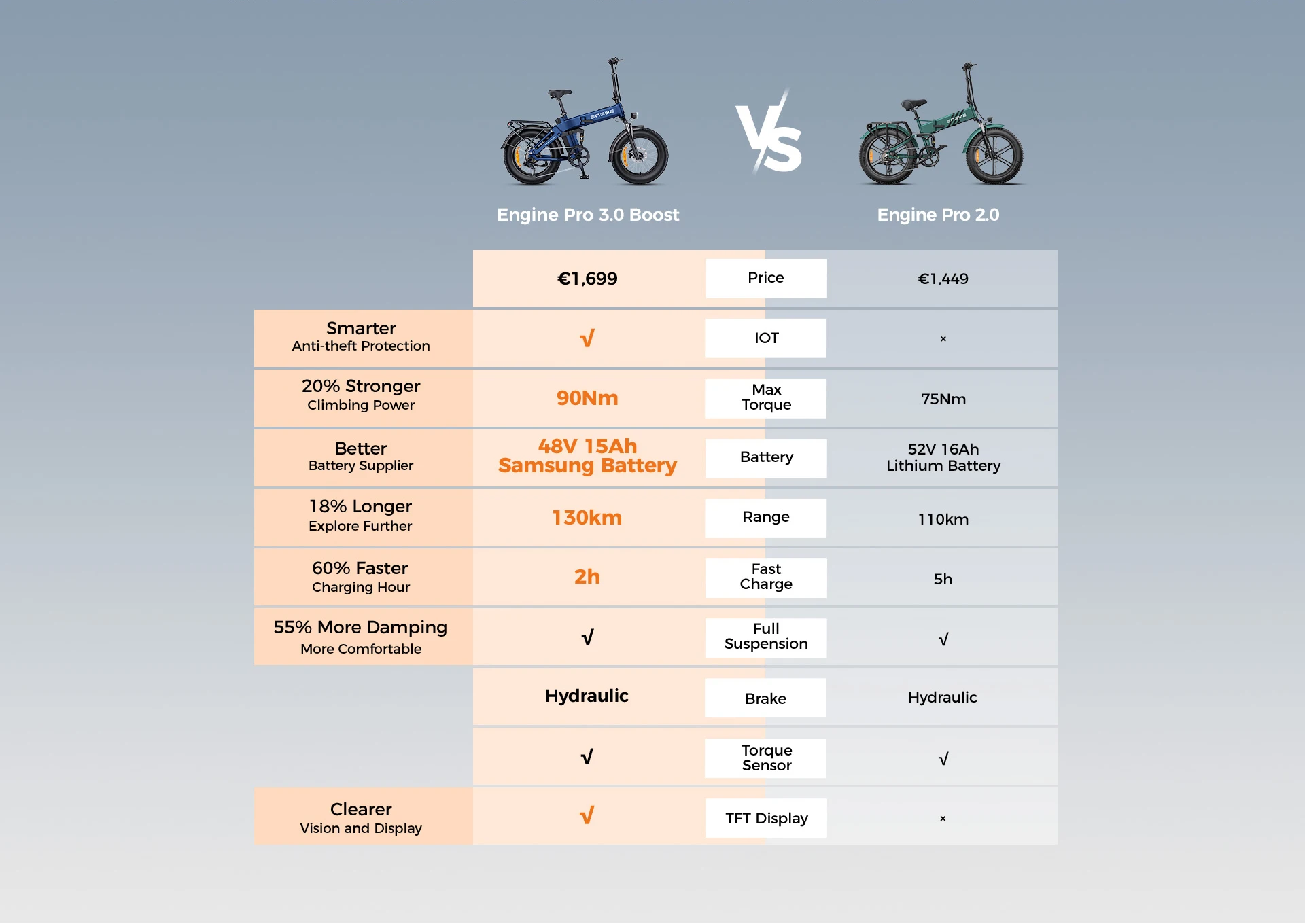 | U paketu dolazi | Baterija, ENGWE Engine Pro 3.0 Boost električni bicikl, Korisnički priručnik, Pedale, Prednje LED svjetlo, Prednji i zadnji blatobran, Punjač, Reflektori, Set alata, Stražnja nogara, Stražnje LED svjetlo, Stražnji nosač |