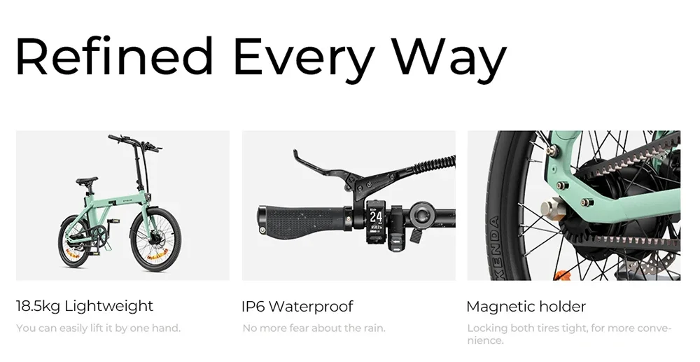 | U paketu dolazi | Baterija, ENGWE P20 električni bicikl, Korisnički priručnik, Pedale, Prednje LED svjetlo, Prednji i zadnji blatobran, Punjač, Set alata, Stražnja nogara, Stražnje reflektivno svjetlo |