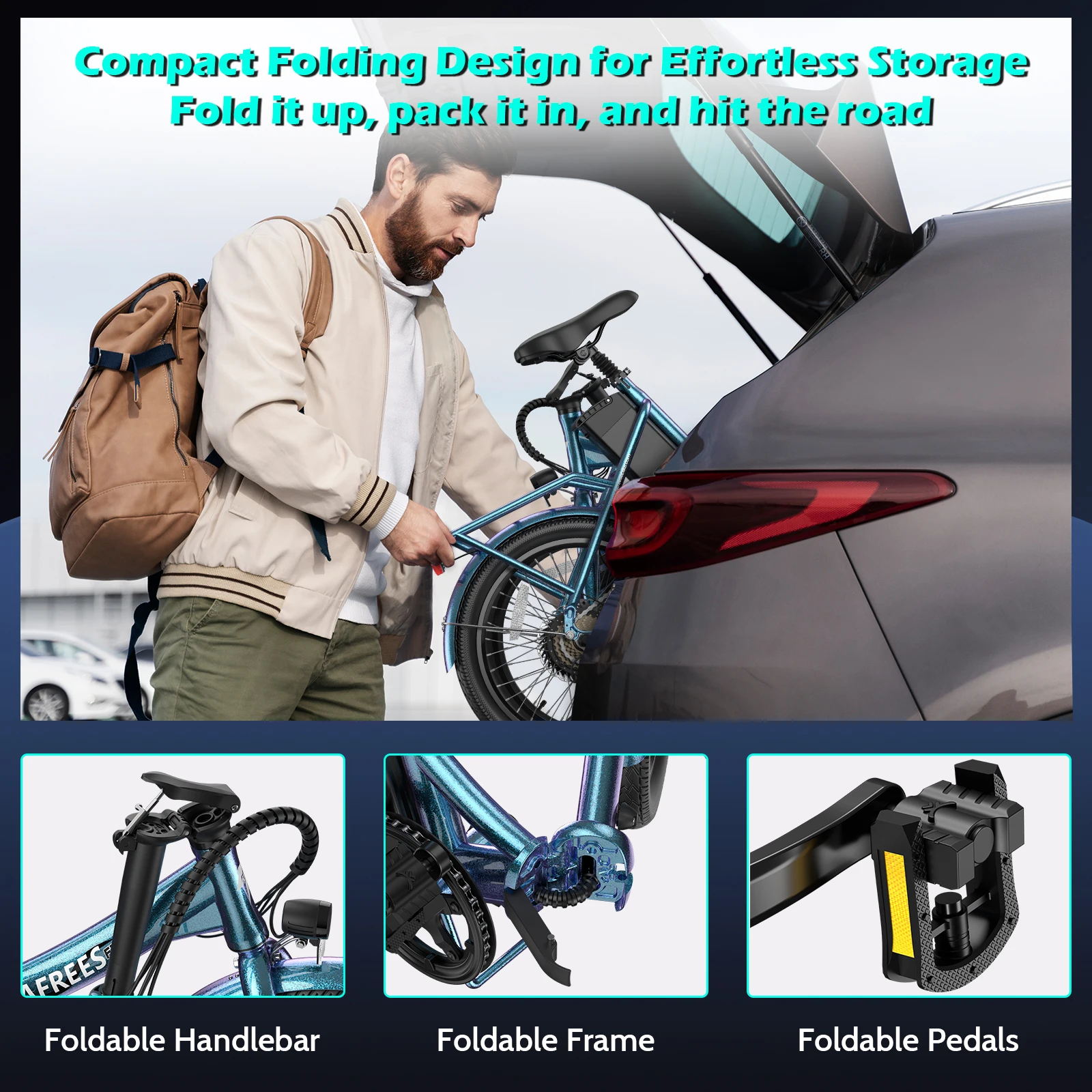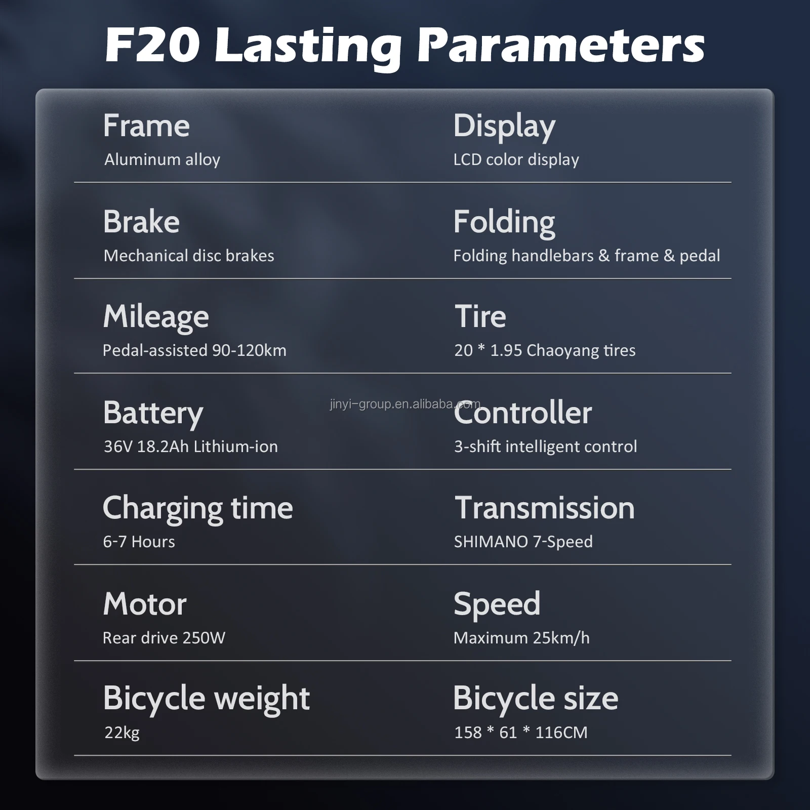 | U paketu dolazi | Fafrees F20 Lasting električni bicikl, Korisnički priručnik, Prednje LED svjetlo, Prednji i zadnji blatobran, Punjač, Set alata, Stražnja nogara, Stražnje reflektivno svjetlo, Stražnji nosač |