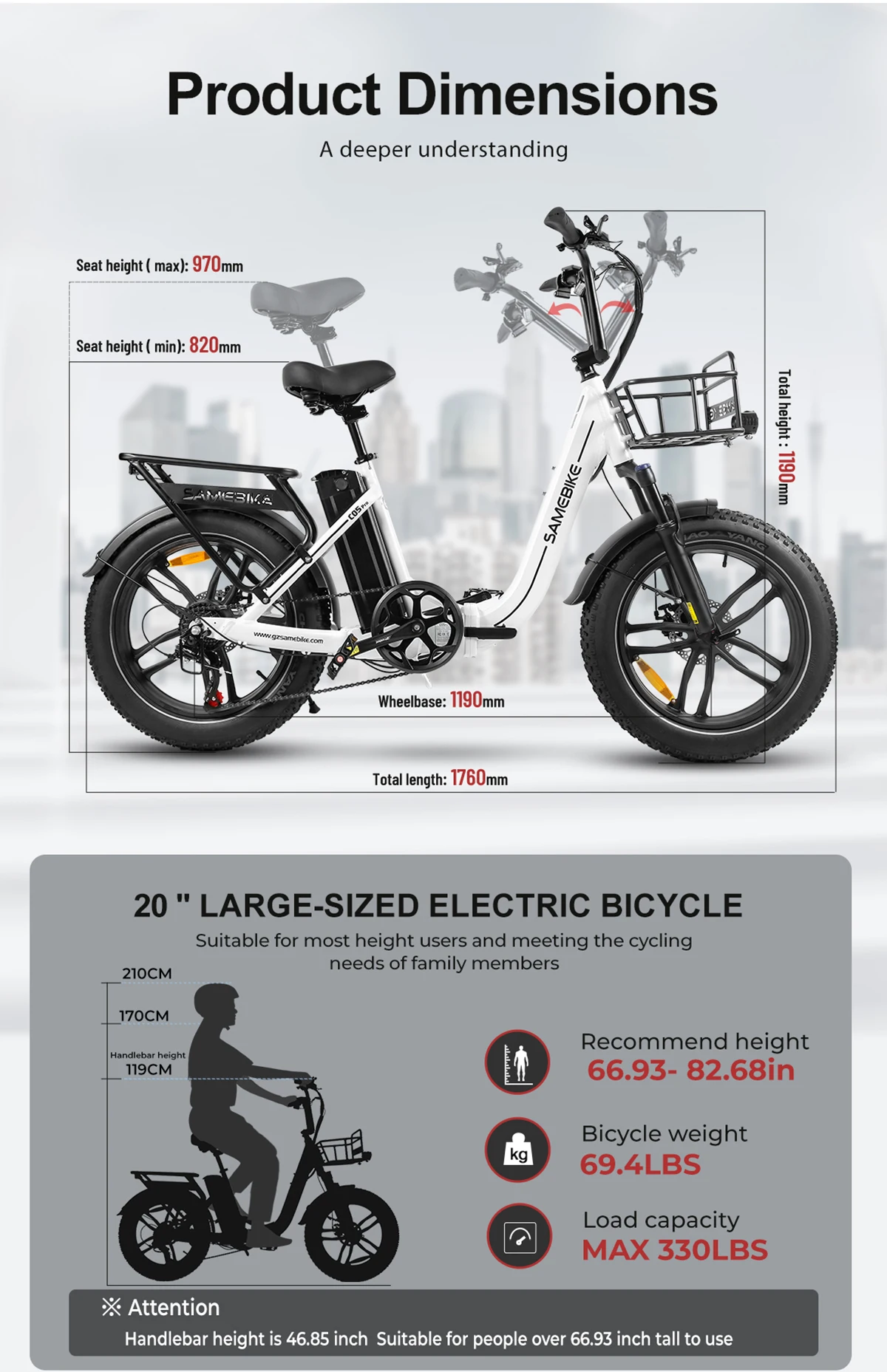 | U paketu dolazi | Korisnički priručnik, Prednja košara, Prednje LED svjetlo, Prednji i zadnji blatobran, Samebike C05 Pro električni bicikl, Stražnja klupa, Stražnja nogara, Stražnje reflektivno svjetlo |